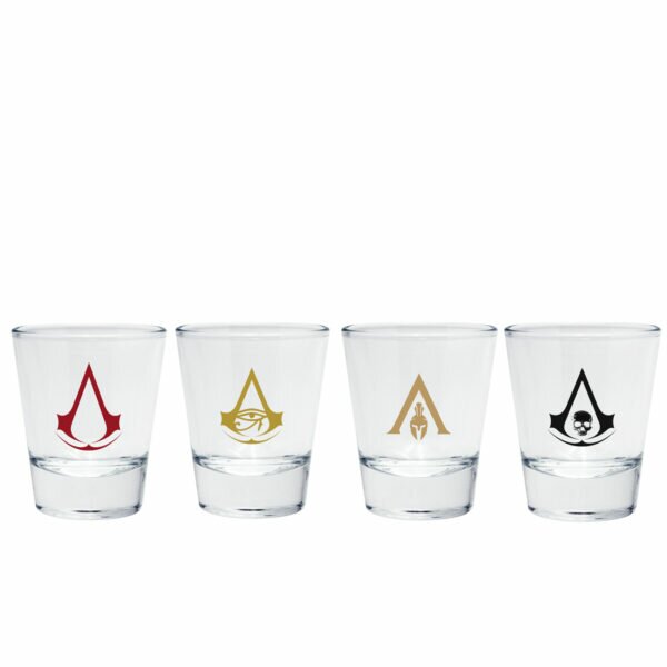 A 4 feles poháron az Assassin’s Creed, az Assassin’s Creed Origins, az Assassin’s Creed Odyssey és az Assassin’s Creed Black Flag logók láthatók.